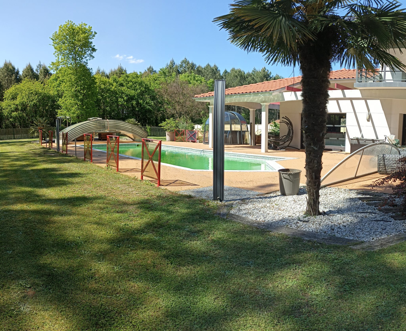 Le parc de 3045 m² , proche de la forêt , inspire à la quiétude Cette villa d'architecte , lumineuse et en parfait état , vous attend...